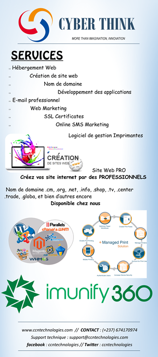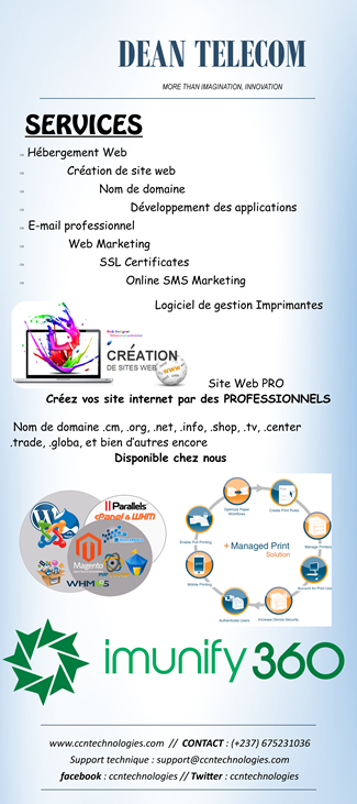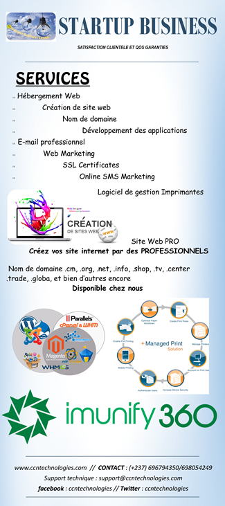 Devenez nos partenaires dans vos espace de vente et cyberespace afin de revendre nos produits et services dans vos espace puis de les activez par vous-même. Nous mettons à votre disposition une équipe de formation et tous nos outils afin que vous soyez en mesure de répondre au besoin clientèle dans vos point de vente. Notre système de facturation et gestion clientèle en ligne vous permet de gérer aisément les services des hébergements web au Cameroun que vous commercialiserez et vos commissions (15 à 40%) soront immédiates puisque c'est vous qui recevrez les fonds d'activation de ces services.